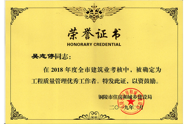 • 吳志停工程質量優(yōu)秀工作管理者