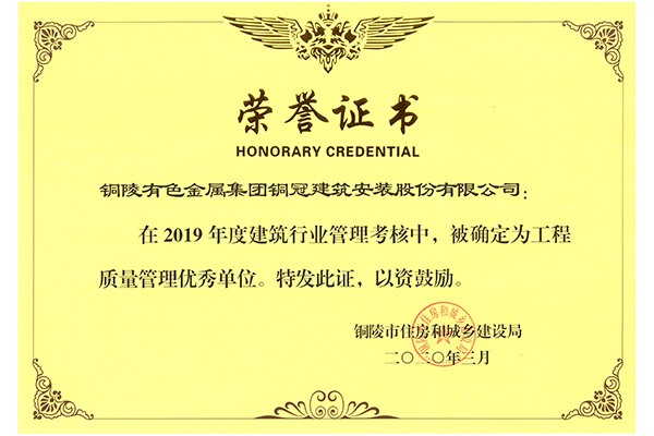 • 工程質量管理優(yōu)秀單位